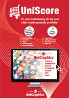 Vi har nu nöjet att lansera webblösningen som vi kallar UniScore på marknaden. UniGraphics var tidiga med att erbjuda en webbaserad beställningslösning för sina kunder. Redan 2001 lanserades första generationen av Score och snabbt blev den en succé på marknaden. Kunderna fick en modern beställningslösning med färdiga produktmallar för populära grafiska produkter.