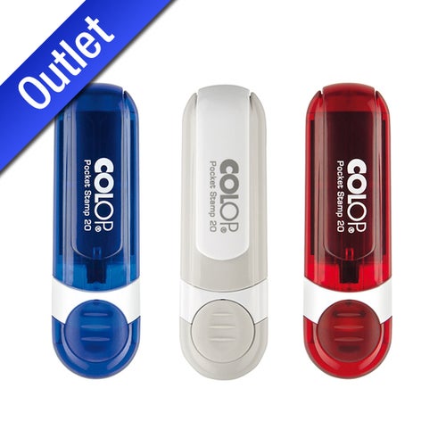 Fickstämpel med inbyggd svart färgdyna. Textplatta med valfri text. Hölje i sorterade färger. Färg för återinfärgning Kvalitet K.