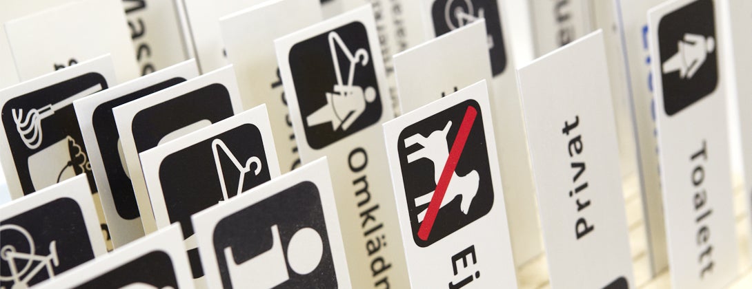 Vi har ett brett sortiment av olika typer av informationsskyltar med 50 olika budskap för omgående leverans på lager. Exempelvis skyltar som visar toalett, lunchrum, tvättstuga, garderob och omklädning.